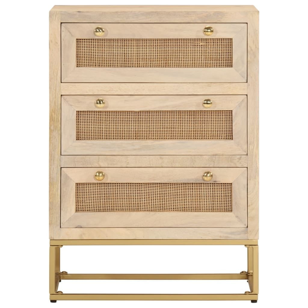 • Trden mangov les: Trden mangov les je močan in trden tropski les, iz katerega je mogoče izdelati trpežno pohištvo. Zaradi čudovitih vzorcev lesa se vsak kos pohištva nekoliko razlikuje od ostalih. Omarica iz trdnega mangovega lesa je vzdržljiva in stabilna.