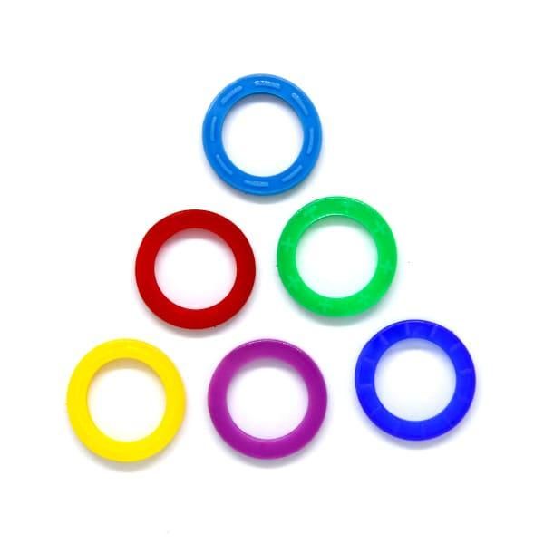 Obroček za okroglo glavo ključa. Uporablja se za označevanje ključev. Na voljo v številnih barvah. Izdelano iz prožne plastike.