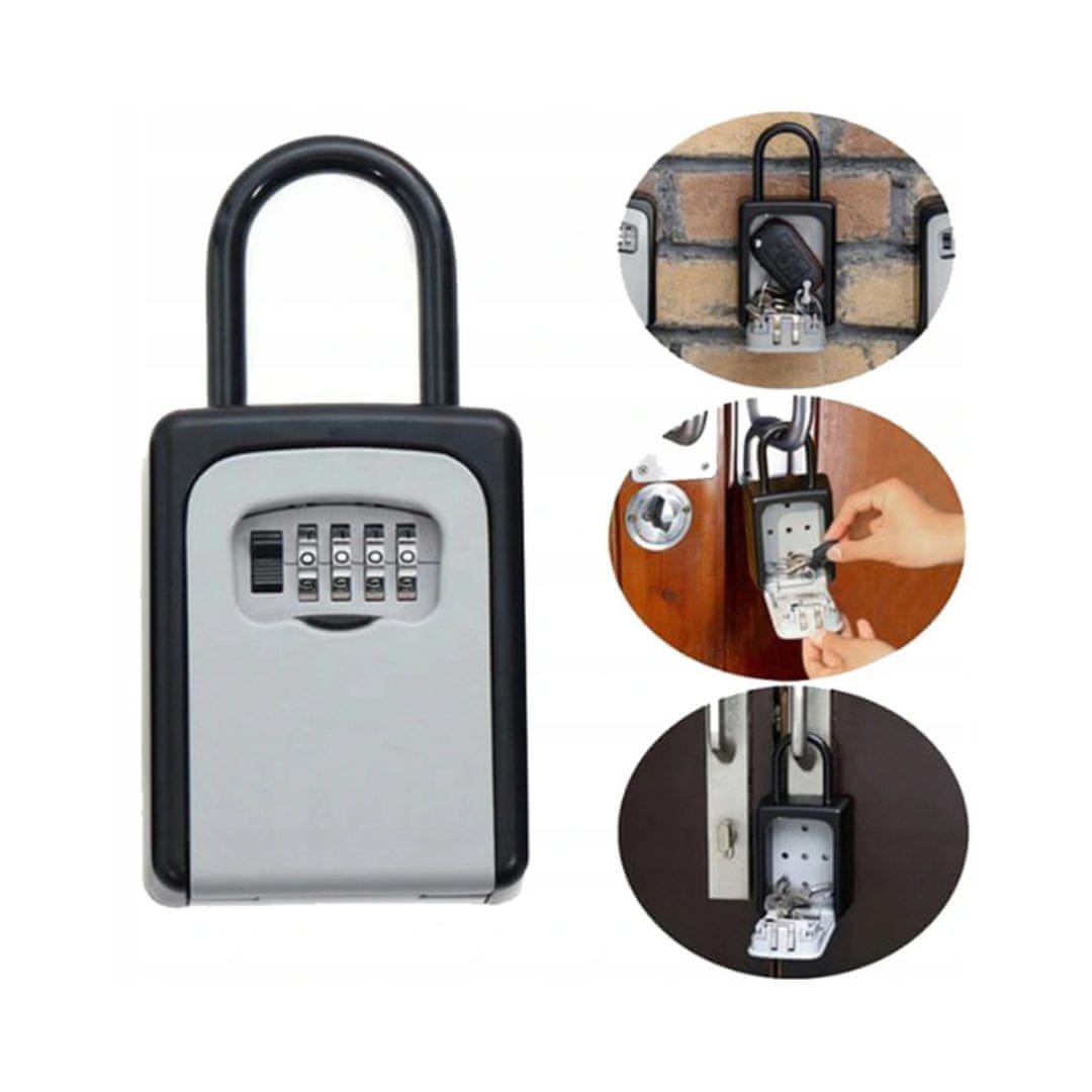 Narejen iz visoko kakovostnega jekla. Ključavnica s 4-mestno kombinacijo vam bo omogočila varno shranjevanje ključev. Možnost večkratne spremembe kode – tovarniška kombinacija 0000.Domačega ključa vam ni treba več kopirati. Dovolj je, da kodo posredujete vsem članom gospodinjstva. 4 luknje in pritrdilna sidra omogočajo trdno in trajno pritrditev na steno.