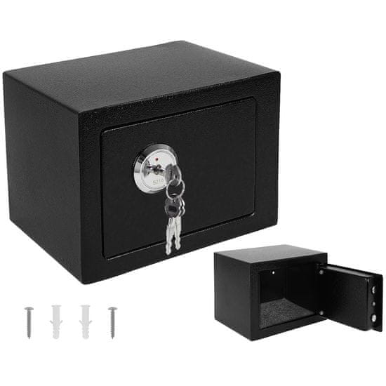 Ta sef ima gladko velikost in hrani dragocenosti in vrednostne dokumente do velikosti A5. Priloženi so pritrdilni zatiči in vijaki, tako da lahko sef namestite v garderobno omaro ali na steno.