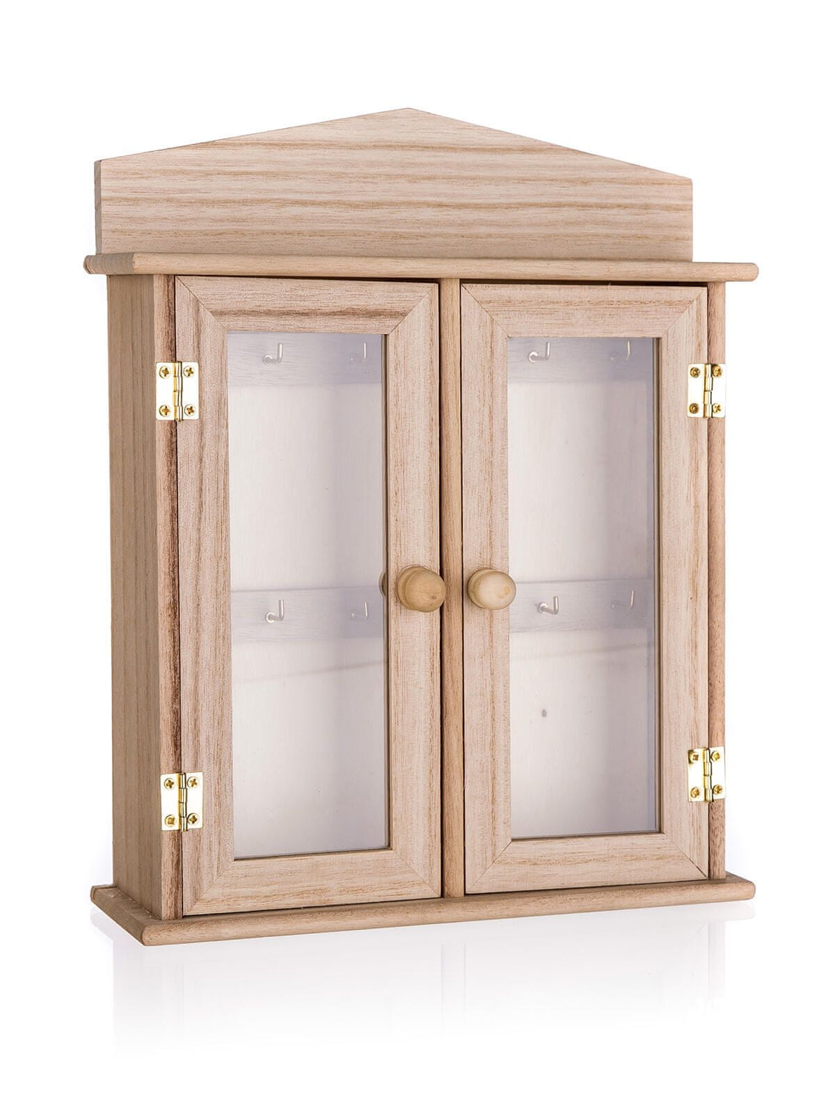 Škatla za ključe 27 × 22 × 6,5 cm, lesena. Dimenzije: 27 × 22 × 6,5 cm Material: brezov in smrekov les, steklo Lesena skrinjica za ključe s steklenimi vrati je primerna za obešanje ključev, Celoten opis