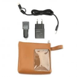 Set vsebuje hišni polnilec, avto polnilec, kabel in torbico.