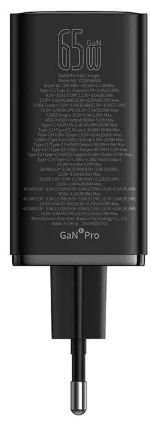 Z največjo močjo 65 W Baseus GaN6 Pro omogoča izjemno hitro polnjenje različnih naprav, vključno s prenosniki, pametnimi telefoni, tablicami in drugimi pripomočki. Zahvaljujoč napredni tehnologiji galijevega nitrida (GaN) je polnilnik manjši, lažji in energetsko učinkovitejši kot tradicionalni polnilci, hkrati pa ohranja visoko zmogljivost brez pregrevanja.