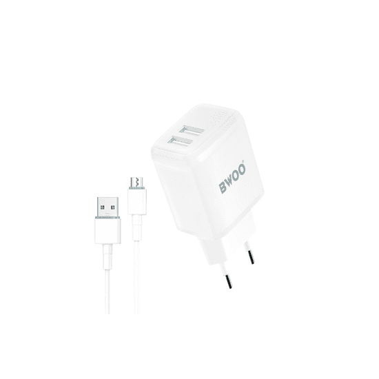 BWOO Polnilec za telefon CDA60V 2x USB 2,4A bel + kabel microUSB