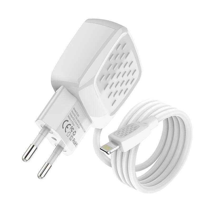 Omrežni polnilnik Foneng EU25 je popolna kombinacija funkcionalnosti in zmogljivosti. Ima vgrajen kabel Lightning in ponuja 2 vhoda USB-A za hitro in učinkovito polnjenje vaših najljubših naprav. Univerzalna vhodna napetost 100–240 V pomeni, da ga lahko uporabljate skoraj povsod po svetu, ker pa je izdelan iz trpežne plastike, zagotavlja dolgo življenjsko dobo in odpornost proti poškodbam.