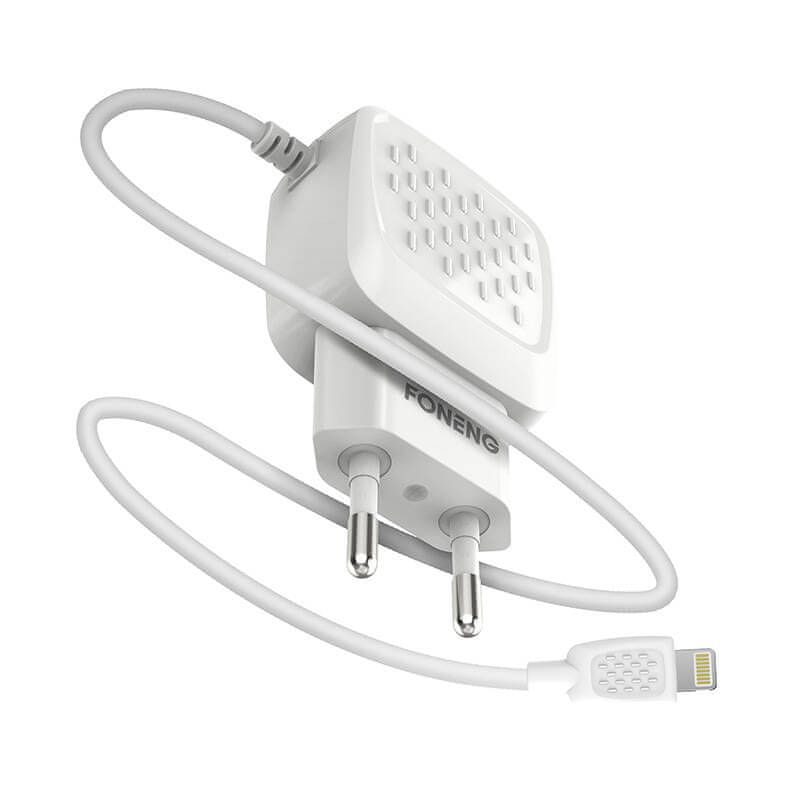Vgrajen 1 m dolg kabel Lightning vam omogoča priročno in hitro polnjenje telefona iPhone ali iPada. Zato vam ni treba skrbeti, da bi pozabili ali izgubili kabel – s polnilnikom Foneng EU25 imate vse, kar potrebujete, na enem mestu.