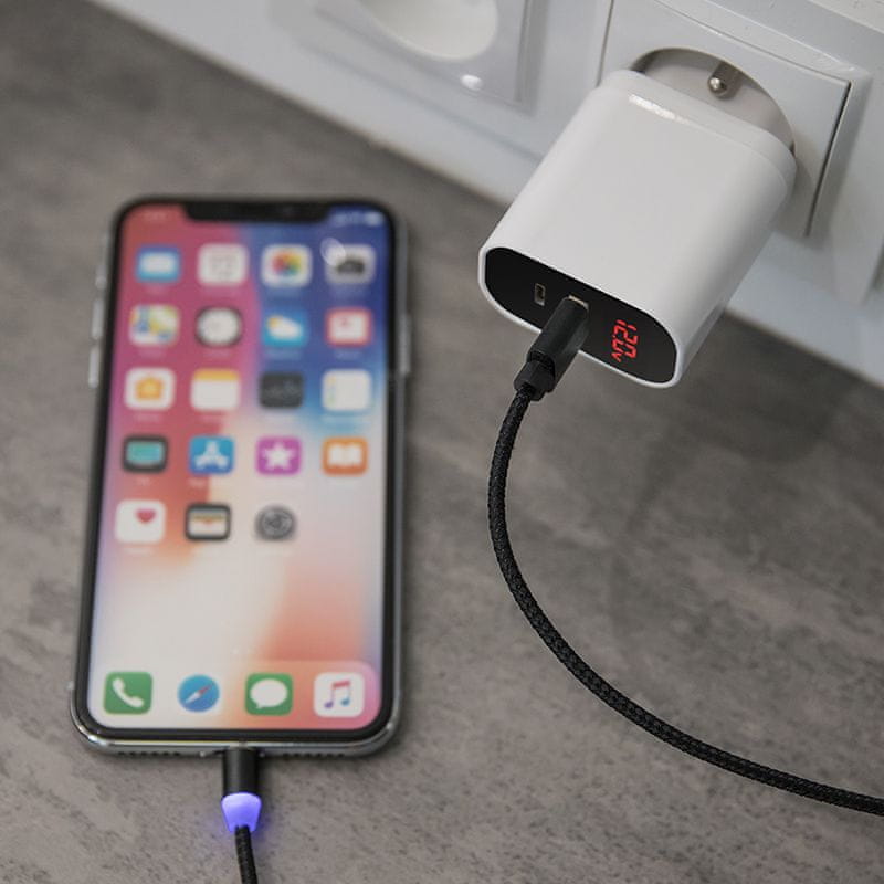 Prihodnost hitrega polnjenja v majhni napravi. Ultra hitri potovalni polnilec 20 W z zaslonom vam omogoča dvojno moč hitrega polnjenja. Dva najbolj priljubljena standarda hitrega polnjenja – PD in QC 3.0 – sta vpeta v to pametno napravo. Polnilnik ima priključek USB + USB-C. Vgrajeni zaslon prikazuje polnilni tok vašega telefona.