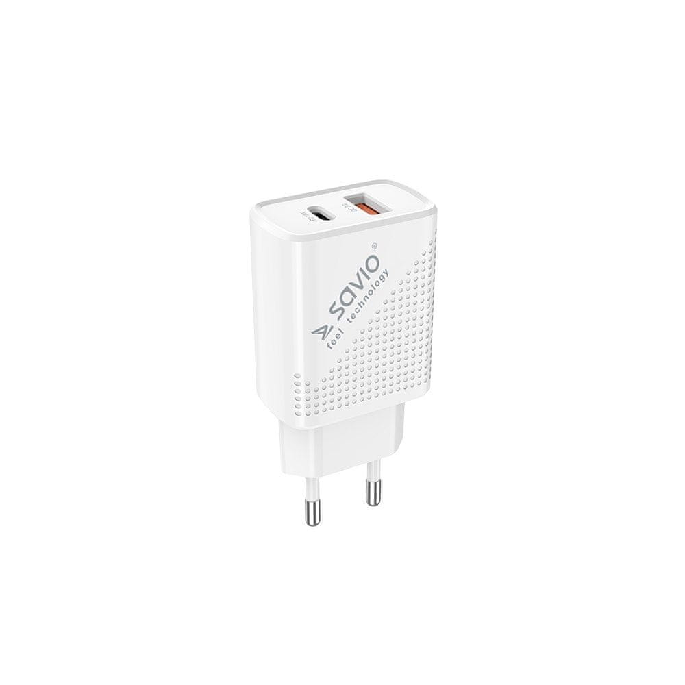 SAVIO SAVIO LA-04 Hitri polnilec USB Tip A in Tip C z močjo 18 W, notranji polnilnik, bel, združljiv s pametnimi telefoni