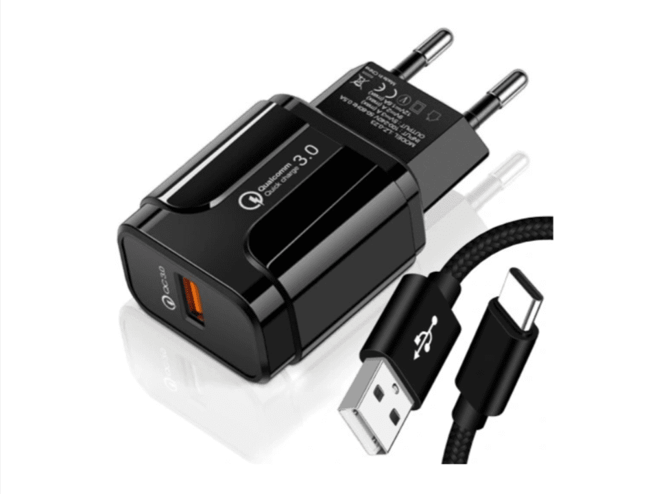 slomart polnilec za telefon QUICK CHARGE 3.0 + USB-C kabel, 3000mA, 5V, črn