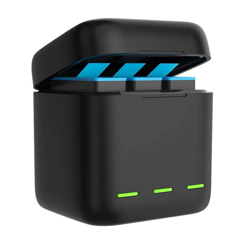 Polnilec TELESIN za polnjenje baterij kamer serij GoPro Hero 9, 10, 11 in 12 je namenjen vsem, ki zahtevajo, da so njihove naprave vedno pripravljene. Ne le, da omogoča takojšnje polnjenje treh baterij, temveč tudi njihovo varno shranjevanje skupaj s pomnilniškimi karticami. Komplet vključuje tudi 3 akumulatorske baterije, vsaka s kapaciteto 1750 mAh.