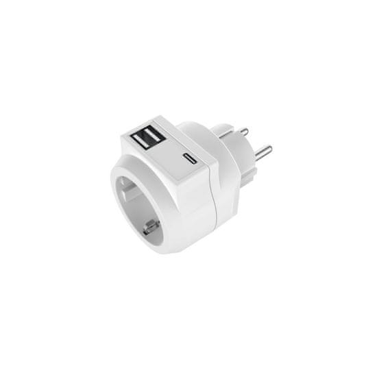 UltraTech Šuko adapter z 2x USB 5V in 1xUSB-C vtičnico 16A 250V bel