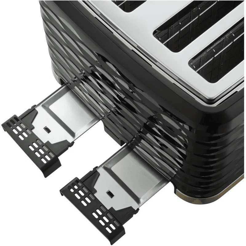 Črno ohišje z nežnimi zlatimi poudarki in plastično površino doda vaši kuhinji pridih elegance. Dva neodvisna para rež omogočata pripravo štirih rezin kruha hkrati – idealna rešitev za večje družine.