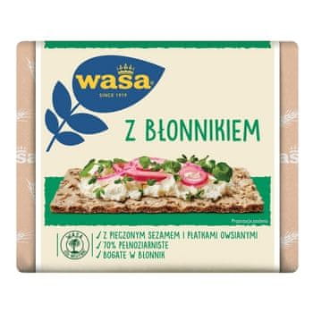 Odkrijte vlakninski kruh Wasa! Ta neverjetno okusen in hrustljav kruh je pečen iz polnozrnate ržene moke, pšeničnih otrobov, sezamovih semen in ovsenih kosmičev ter ima veliko vlaknin. Ržene vlaknine podpirajo zdravo delovanje črevesja, 6 rezin vlakninskega kruha Wasa pa zagotavlja kar 7 g te vrste vlaknin.