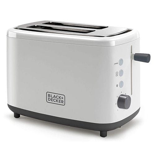 Topinkovač Black+Decker, BXTO820E, 6 nastavení stupňů opékání, 2 široké sloty 3,5 x 13 cm, vyjímatelný tácek na drobky, funkce stop, rozmrazování a ohřívání, 820 W