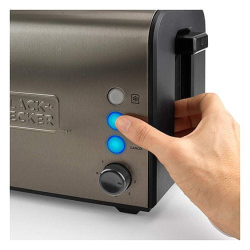 Topinkovač Black+Decker, BXTO1000E, 7 stupňů, nerez ocel, extra široký otvor, funkce stop, rozmrazování, vyjímatelný podtácek, 1000 W Celoten opis