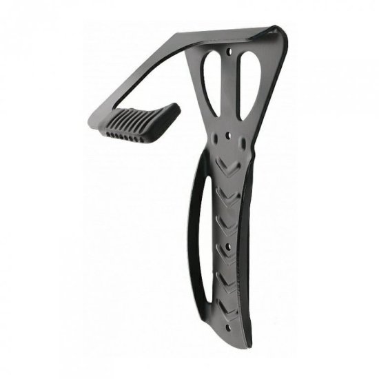 • zelo stabilen stenski nosilec – barva: črna – vključno s 3 vijaki in zatiči – za obešanje za sprednjim kolesom – s plastično zaščito za kavelj