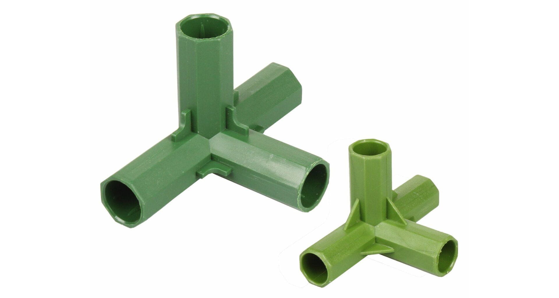 Štiristranska sponka za cevi je plastična štiristranska spojka za vrtne podporne drogove Gardening Pole. Spojka je na voljo v dveh velikostih za drogove s premerom 11 mm ali 16 mm.