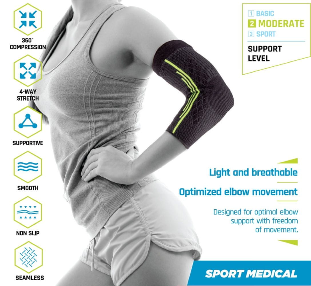 Steznik za komolec DYNAMIC COMPRESSION se uporablja preventivno med športnimi aktivnostmi.