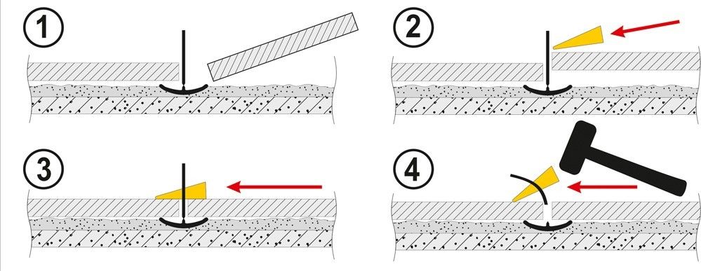 4. Ko se lepilo za ploščice strdi, odstranite sponko tako, da jo rahlo potrkate.