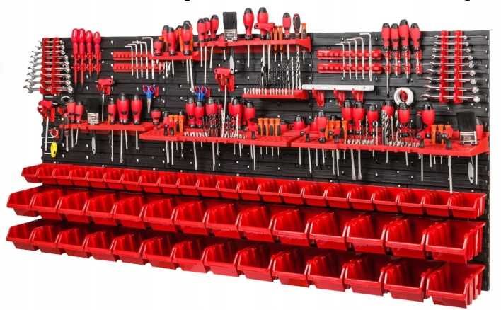 ORODNA PLOŠČA 170×78cm KRAFT&DELE Delavniška plošča 170×78cm (orodje ni vključeno!) KD11861. Ploščo je mogoče poljubno spreminjati, povečevati ali pomanjševati. Držala za orodje in pladnje lahko obesite kamor koli. Komplet bo primeren povsod, kjer potrebujete shranjevanje orodja, vijakov, moznikov itd. Ta orodjarna je odlično darilo za vsakogar. KD11861 SESTAVA KOMPLETA: 22 x posode 80 × 115 × 60 mm 28 x posode 120 × 195 × 90 mm 2 x komplet držal za ključe 8 x držala za izvijače 4 x obešalniki 5,5 cm 4 x obešalniki 3,5 cm Polica za orodje 190 × 111 × 32 mm Polica za orodje 180 × 111 × 32 mm 2 x Polica za orodje 384 × 111 × 50 2 x Polica za orodje 580 × 158 × 67 mm SPLOŠNE DIMENZIJE: Dolžina: 170 cm Širina: 78 cm Teža: 8,6 kg