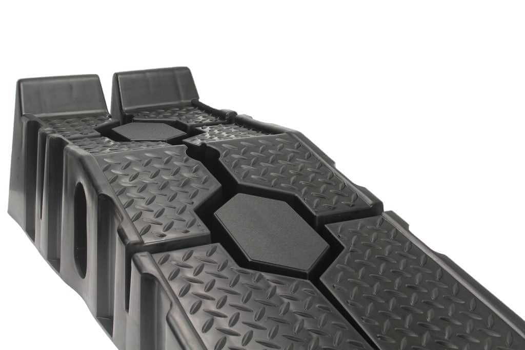 DOVOZNE KLANČINE ZA OSEBNE AVTOMOBILE GEKO KLANČINA 2 KOS LASTNOSTI: DOVOZNA KLANČINA ZA OSEBNE AVTOMOBILE Univerzalne dovozne klančine za osebne avtomobile. Izdelane iz trpežne plastike. Idealne za domače garaže. nežna klančina izjemno lahka in trpežna konstrukcija utorjene klančine znatno povečajo oprijem primerne za avtomobile s težo do 2 ton visok varnostni prag TEHNIČNI PODATKI: Nosilnost: 2 toni (komplet) Širina klančine: 33 cm Dolžina klančine: 90 cm Dimenzije ploščadi (D x Š): 26 × 29 cm Višina ploščadi: 17 cm Višina varnostnega praga: 5 cm