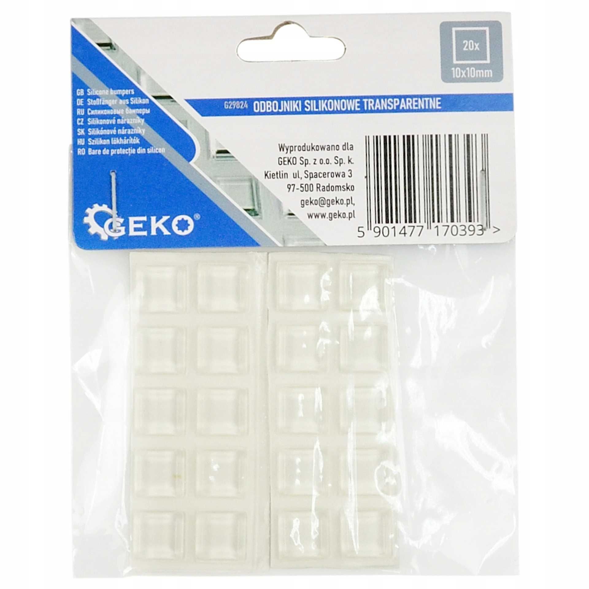 Prozorni silikonski odbijači – pravokotni za pohištvo 10×10mm 20 kosov Celoten opis