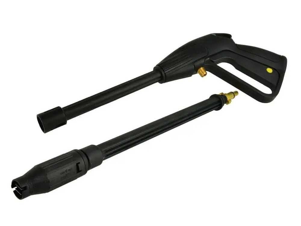 GEKO VISOKOTLAČNI ČISTILNIK S KOVINSKIM PRIKLJUČKOM 14 mm 150 BAR. Ta visokotlačna čistilna pištola s sulico ima funkcijo nastavitve širine curka. Standardni 14 mm navoj jo naredi združljivo s praktično vsemi visokotlačnimi čistilniki, ki so na voljo na poljskem trgu. Je nadomestilo za visokotlačne čistilnike znamk, kot so Karcher, Bosch, Makita, Variant, Lavor, Matrix, Kraftdelle, Black & Decker in številne druge s 14 mm navojem. Značilnosti izdelka: Nastavljiv vodni curek, Skrbno izdelan, Največji delovni tlak 60 barov, Zmore temperature vode do 60 °C, Zaklepanje za preprečevanje nenamernega aktiviranja sprožilca, Največji pretok vode 15 l/min.