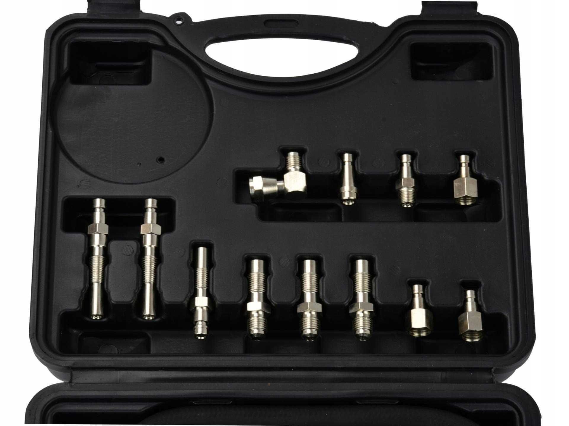 MERILNIK KOMPRESIJSKEGA TLAKA DIZELSKIH MOTORJEV 0–70BAR G02510 GEKO PRESSURE TESTER je izdelan iz visokokakovostnih materialov. Ta tester kompresije dizelskih motorjev z merjenjem od 0 do 70 barov je izdelalo priznano podjetje GEKO. LASTNOSTI: Profesionalni tester kompresijskega tlaka, zasnovan za dizelske avtomobile. Komplet vključuje komplet adapterjev za večino dizelskih motorjev, proizvedenih po vsem svetu. Zasnovan je za servisiranje avtomobilov in diagnostiko motorjev s kompresijskim vžigom. Komplet vključuje manometer do 70 BAR (1000 PSI) s cevjo, hitrim priključkom in izpustnim ventilom, adapterje za injektorje in adapterje za žarilne svečke. Uporablja se lahko v osebnih avtomobilih in kombijih. Celoten komplet je pakiran v priročni torbici za varen transport in shranjevanje. Tehnični podatki: Manometer z območjem od 0 do 70 BAR. Fleksibilna cev, dolga približno 400 mm, ki se zaključi s funkcionalnim hitrim priključkom za enostavno priključitev posameznih merilnih konic. Komplet merilnih konic in adapterjev, ki omogočajo testiranje večine dizelskih motorjev.