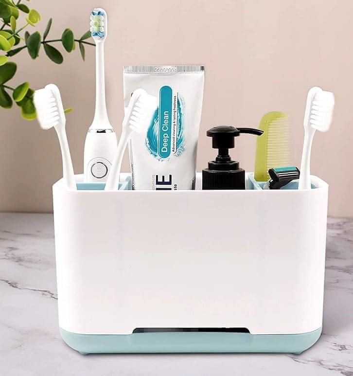 Organizator za zobne ščetke je robusten in praktičen dodatek za kopalnico, idealen za veččlanske družine.
