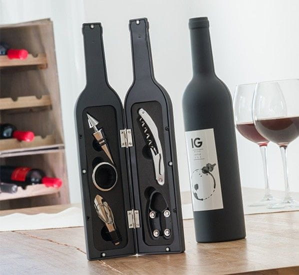 S tem elegantnim in izvirnim dizajnom v obliki steklenice je shranjevanje vinskih pripomočkov veliko lažje, saj škatlo lahko pospravite v omarico za vino ali pa jo pustite zunaj kot dekoracijo. Je odlično darilo tako ob posebnih priložnostih kot ob drugih dogodkih.