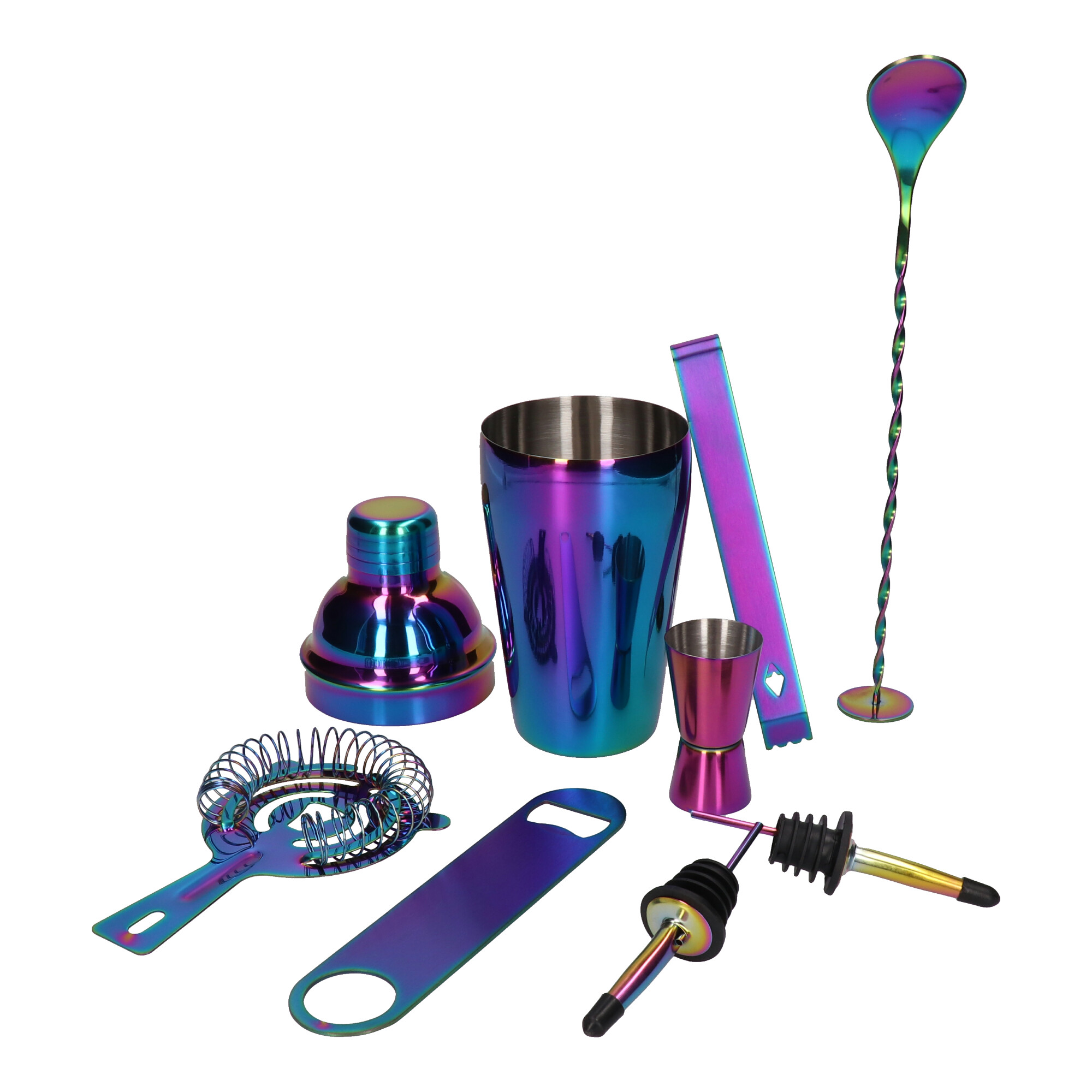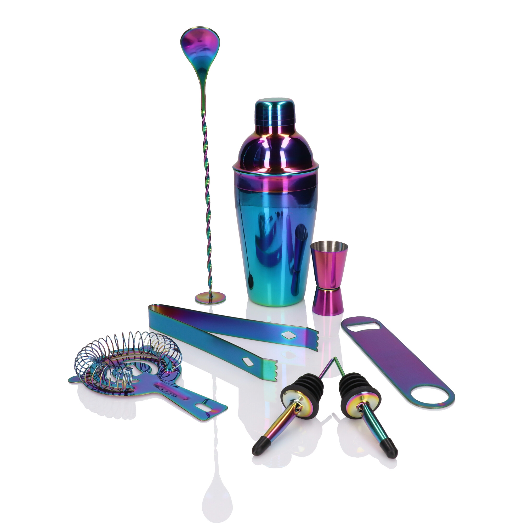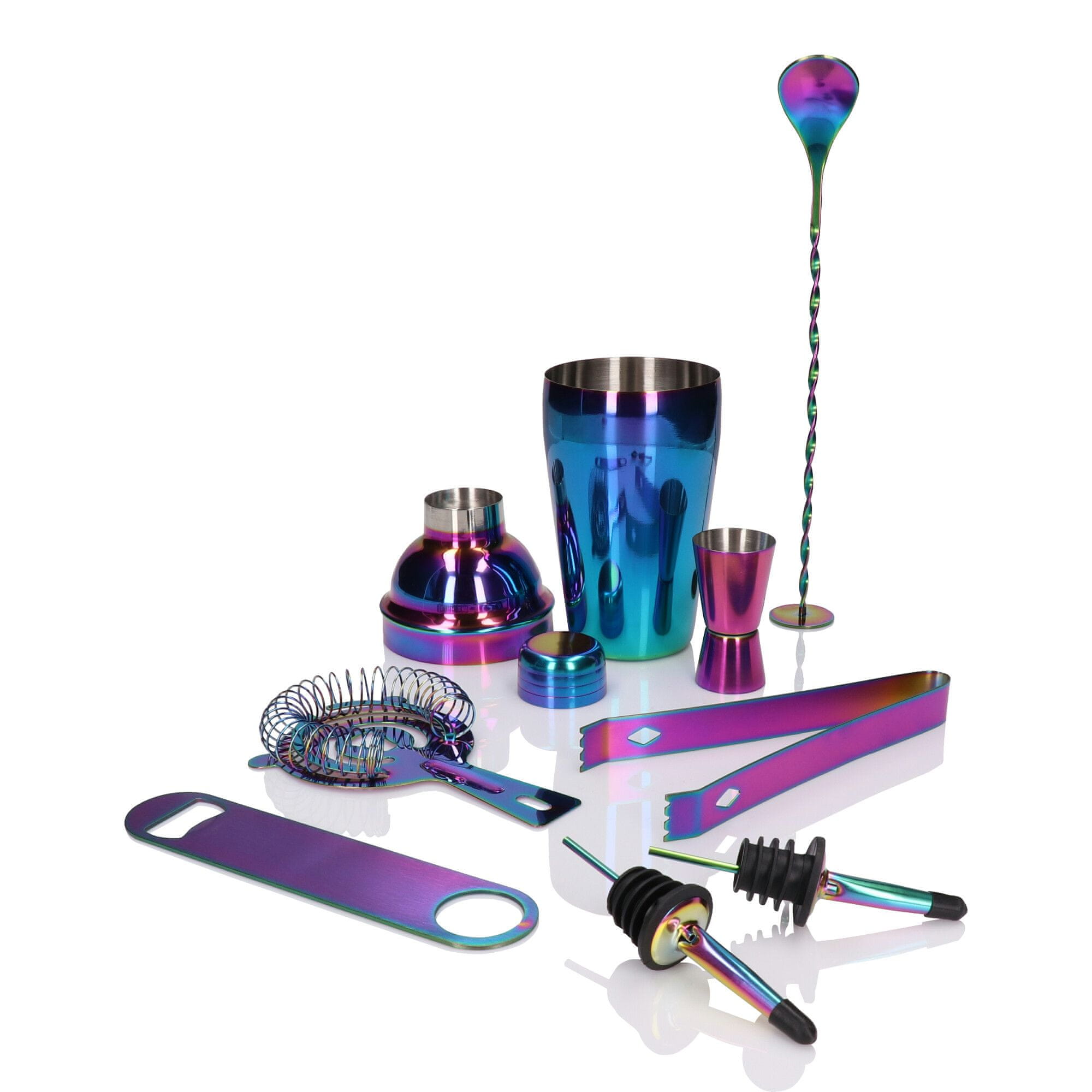 Barmanski set za pijačo in alkohol – 8 kosov v mavrični barvi