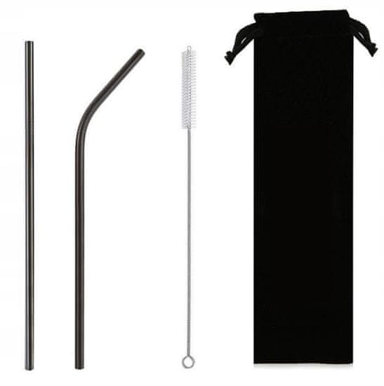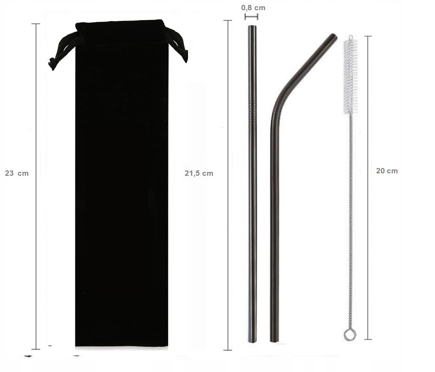 Set 2 črnih jeklenih slamic 215×8 mm, vrečke in čistila