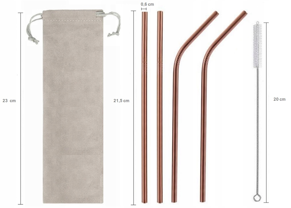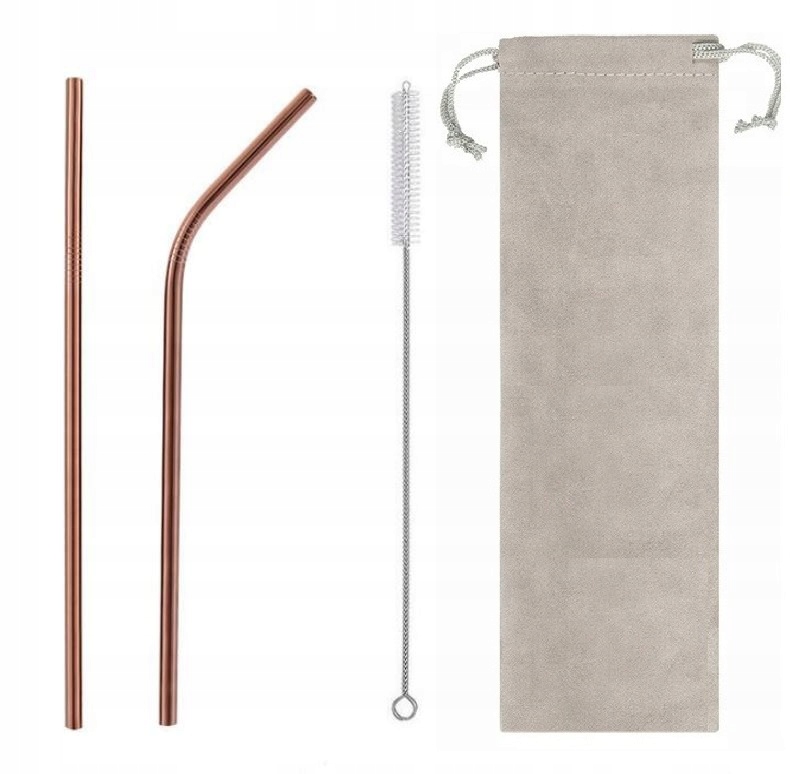 Set 2 jeklenih slamic v barvi šampanjca 215×6 mm ter torba in čistilo