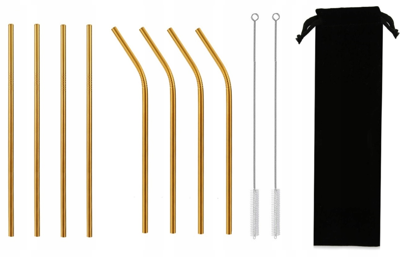Set 8 kosov zlatih jeklenih slamic 215×6 mm, vrečka in čistila