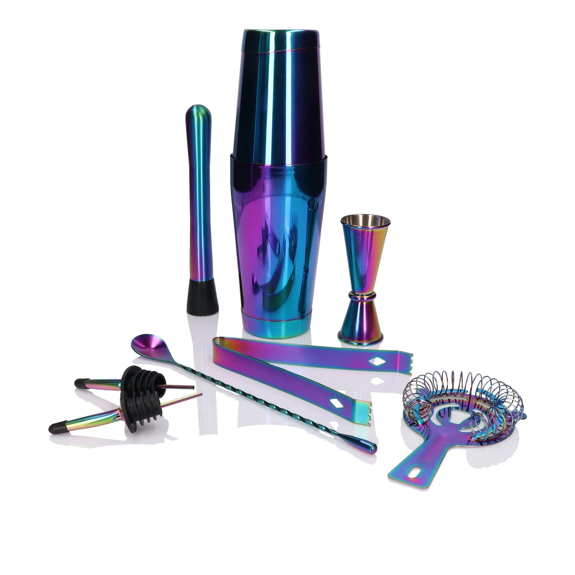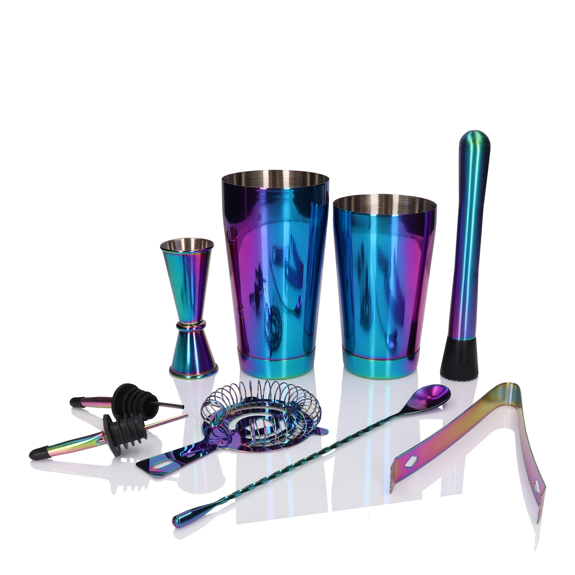 Barmanski set za koktajle – 9 kosov v mavrični barvi