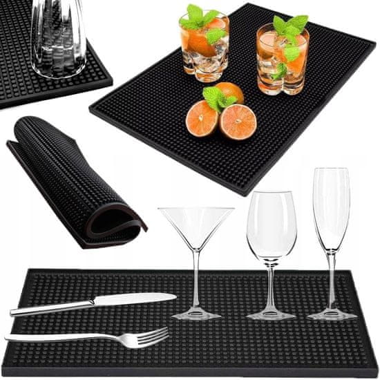 • VSESTRANSKA UPORABA – podloga se lahko uporablja za sušenje posode, pa ne samo to! Odlično se obnese tudi kot podloga za pijačo v baru. To je popoln pripomoček za barmane – ni jim treba vsakič brisati mokrega pulta; pijačo lahko preprosto pripravijo na podlogi.
