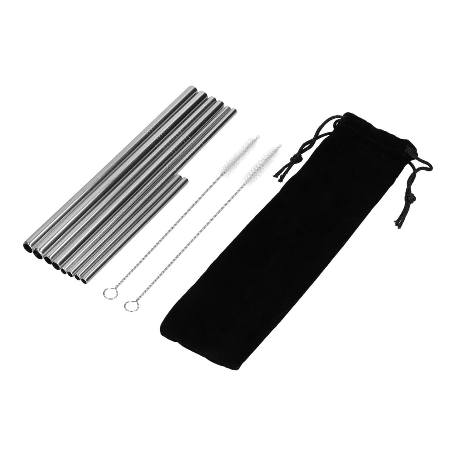 Set 8 srebrnih jeklenih slamic, 2 čistila in vrečke