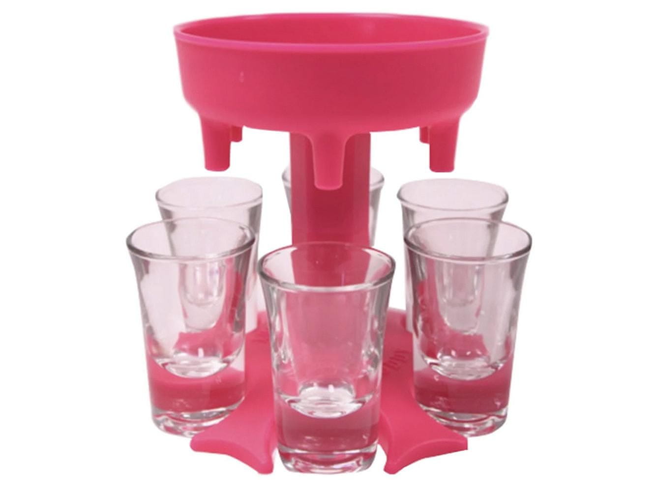 Točilnik alkohola s kozarci je odlična ideja za zabave s prijatelji, družinska srečanja ali počitniška potovanja. Praktičen pripomoček, ki bo olajšal istočasno polnjenje kozarcev.