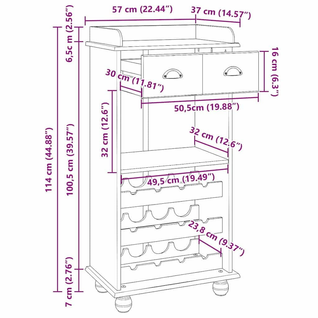 Vidaxl Omara za vino ASKIM Medeno voskasta 57 x 37 x 114 cm
