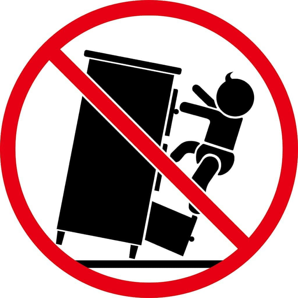 • Da se prepreči prevračanje, je treba ta izdelek uporabiti s priloženo napravo za pritrditev na steno.