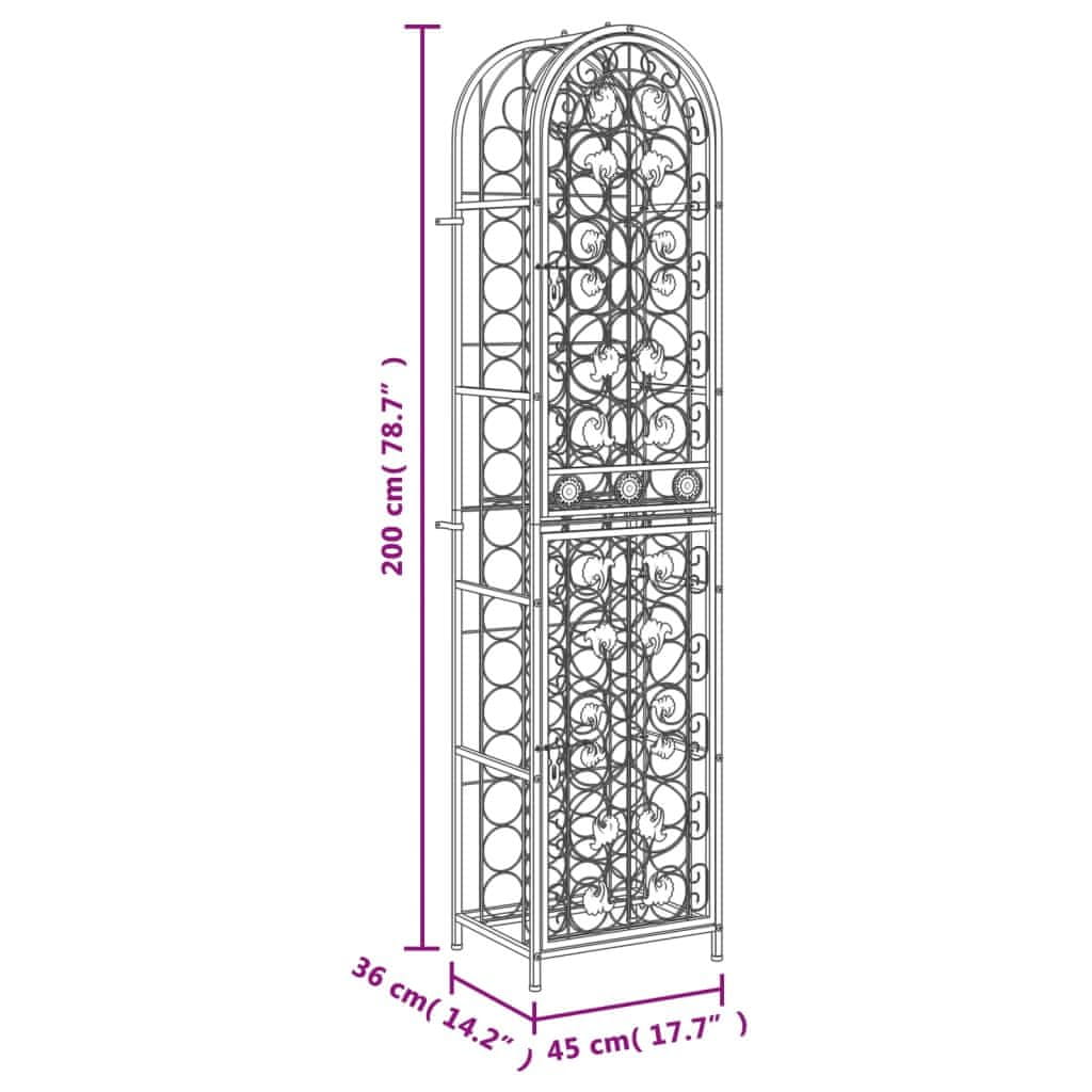 Vidaxl Vinsko stojalo za 73 steklenic črno 45x36x200 cm kovano železo
