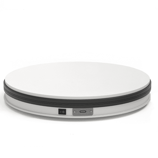 Vrteči se podstavek za produktno fotografijo z belim ozadjem. Primeren za predmete do 30 kg. Celoten opis