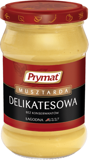 Delikatesna gorčica Prymat je narejena iz belih gorčičnih semen. Odlikuje jo blag, splošno priljubljen okus in nežna, kremasta konsistenca.