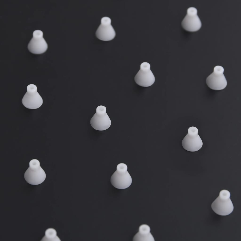 Šobe iz silikona preprečujejo, da bi se na njih nabiral vodni kamen, poleg tega pa so tudi enostavne za čiščenje. Vrtljivo spoj omogoča nastavitev naklona pršenja.