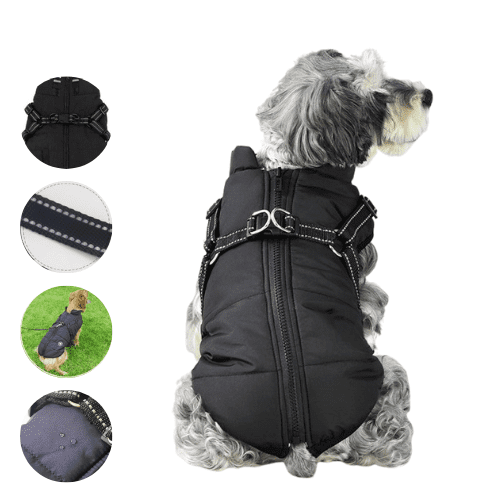 Pasji plašč je izdelan iz nepremočljive tkanine, je dobro odporen proti obrabi in moderno oblikovan. Notranja stran je izdelana iz kompozitne tkanine iz flisa, je topla in udobna. Odporna je na veter, saj ima tudi skrčljiv ovratnik in učinkovito prepreči vdiranje hladnega zraka.