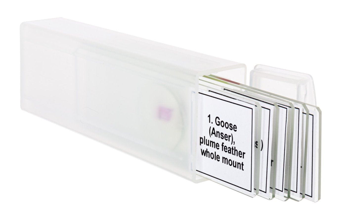 - Vključuje 5 bioloških vzorcev, ki jih je mogoče uporabiti s katerim koli biološkim mikroskopom
