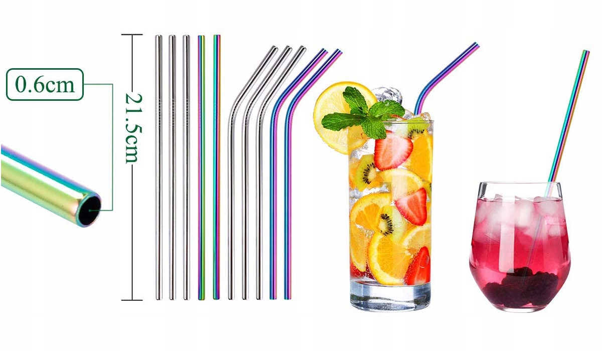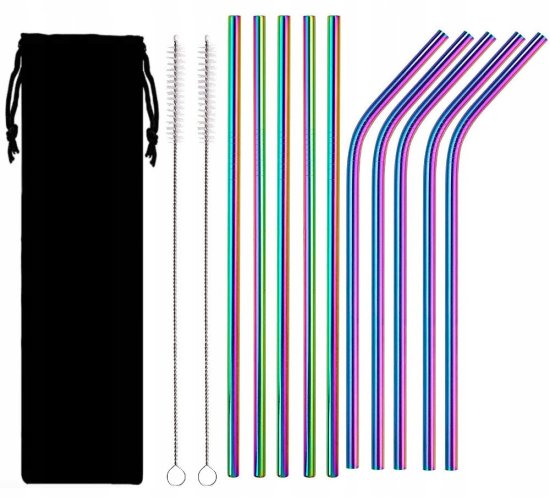 10× KOVINSKE MAVRIČNE EKO SLAMICE ZA VEČKRATNO UPORABO Celoten opis