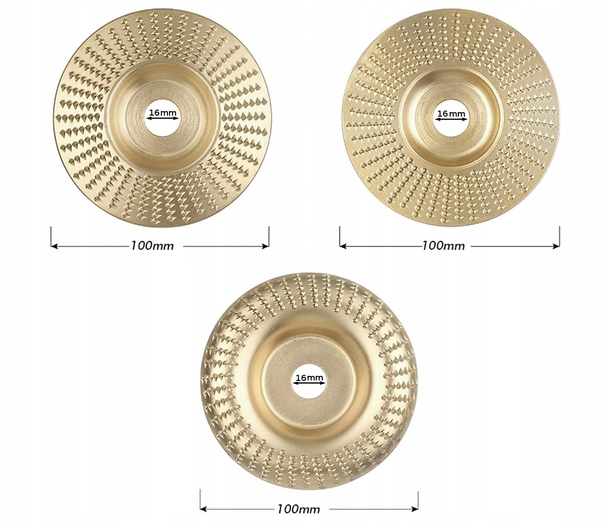 Komplet 3 100 mm diskov za rezbarjenje in skobljanje lesa za kotne brusilnike.