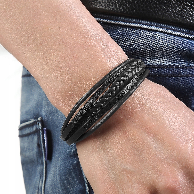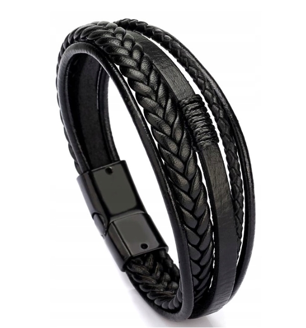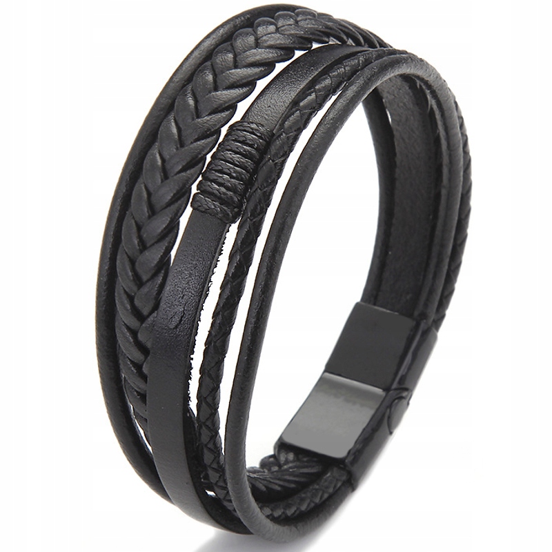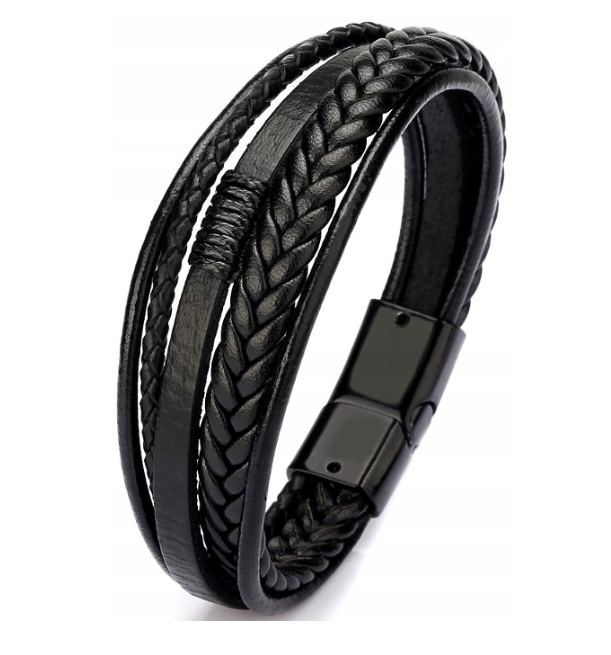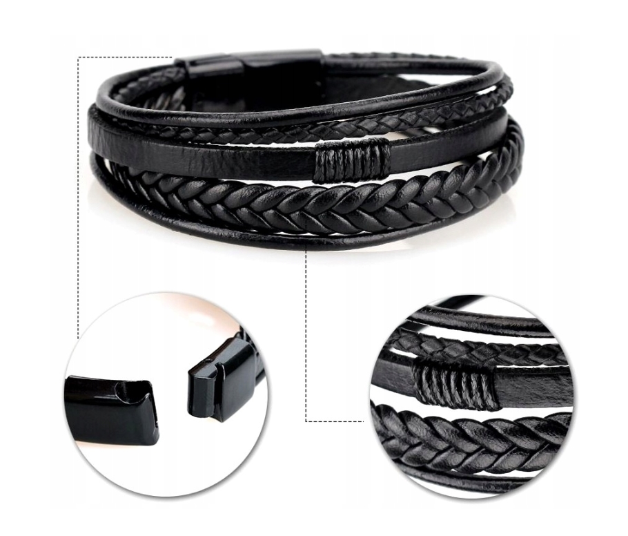 shumee ČRNO USNJENA MOŠKA ZAPESTNICA IZ NERJAVEČEGA JEKLA