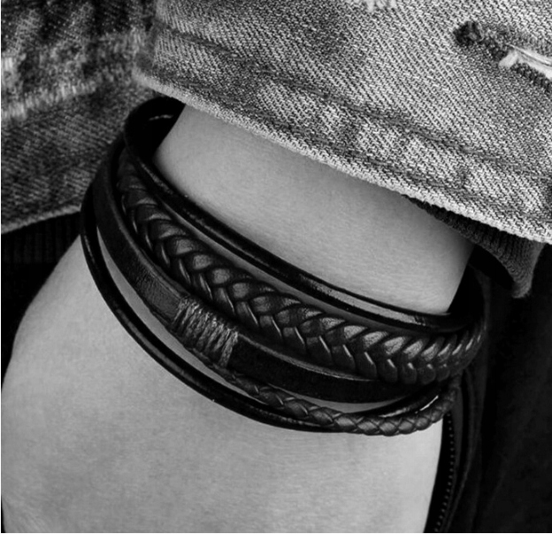 MOŠKA USNJENA ZAPESTNICA IZ NERJAVEČEGA JEKLA